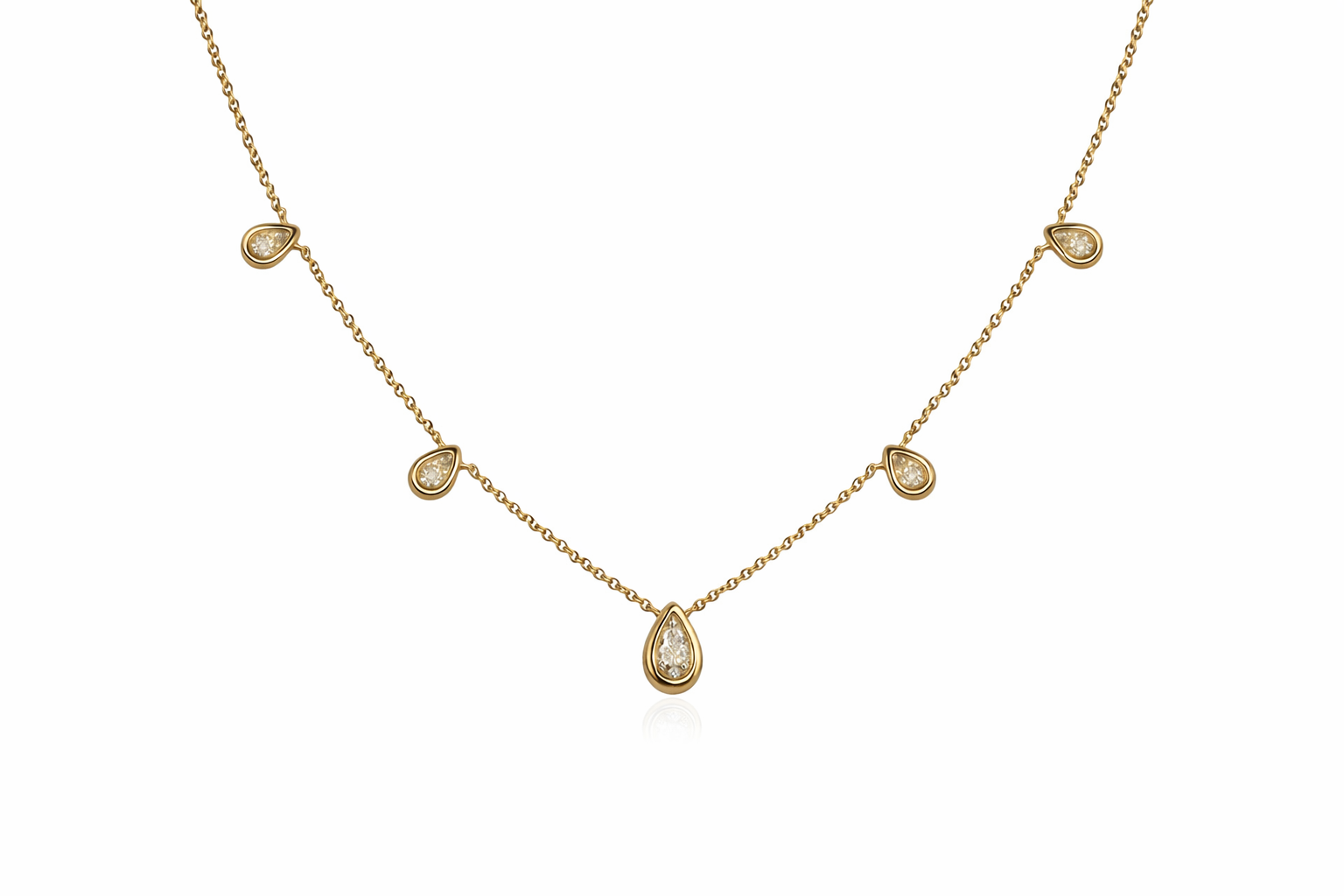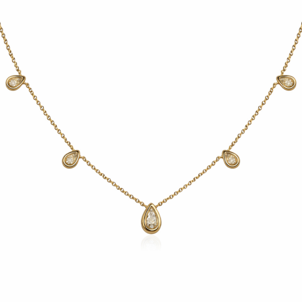 Collier, 5 fancy diamonds, 18k yellow gold