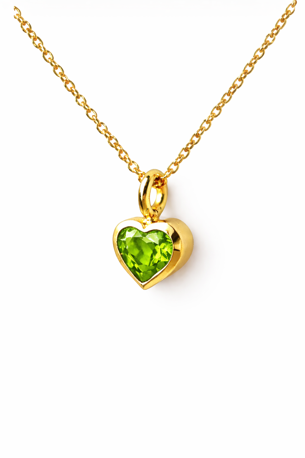 Collier, heart, peridot, 18k yellow gold