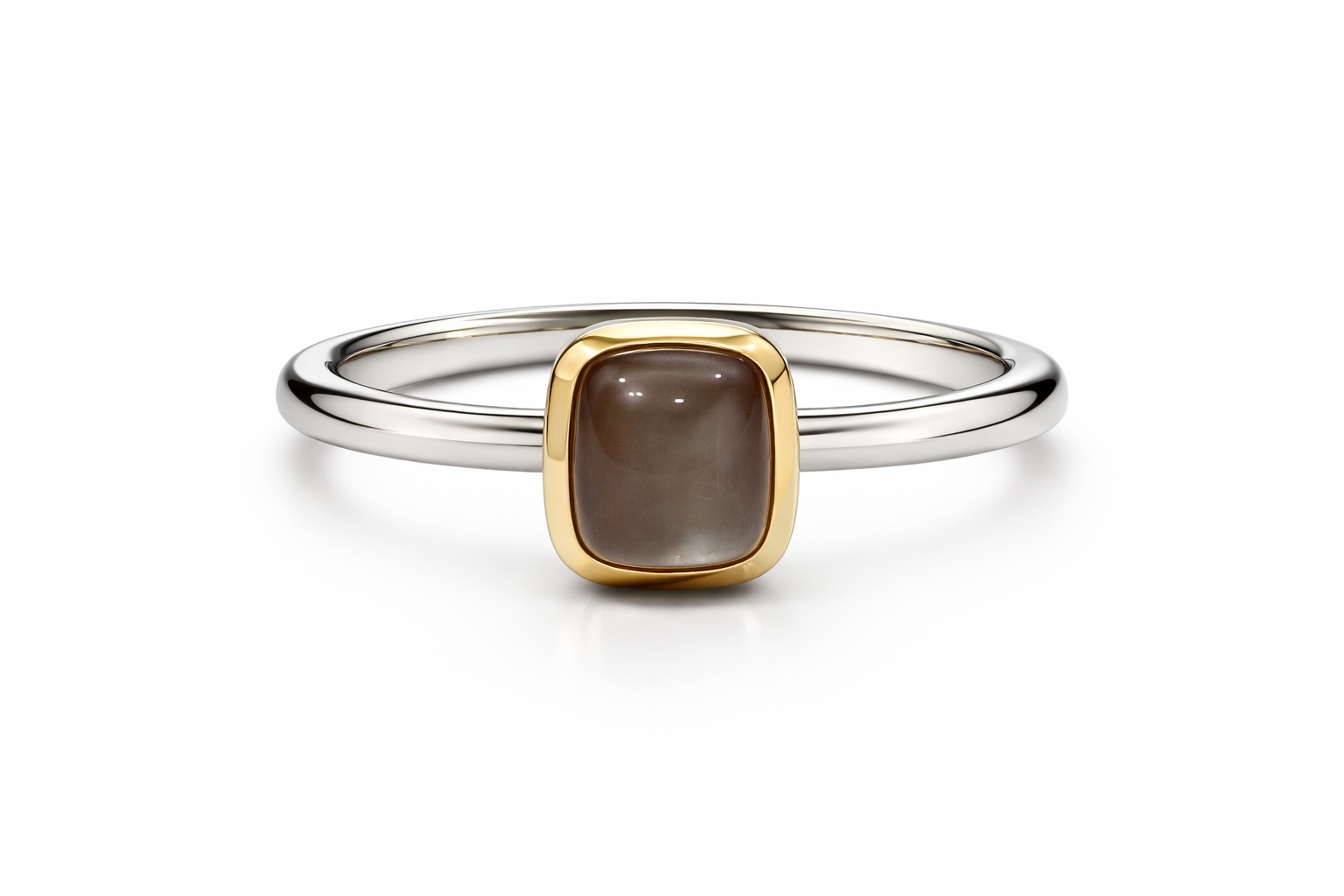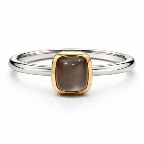 Ring, cabochon antique, moonstone orange-brown, 925/- sterling silver, 750/- rose gold