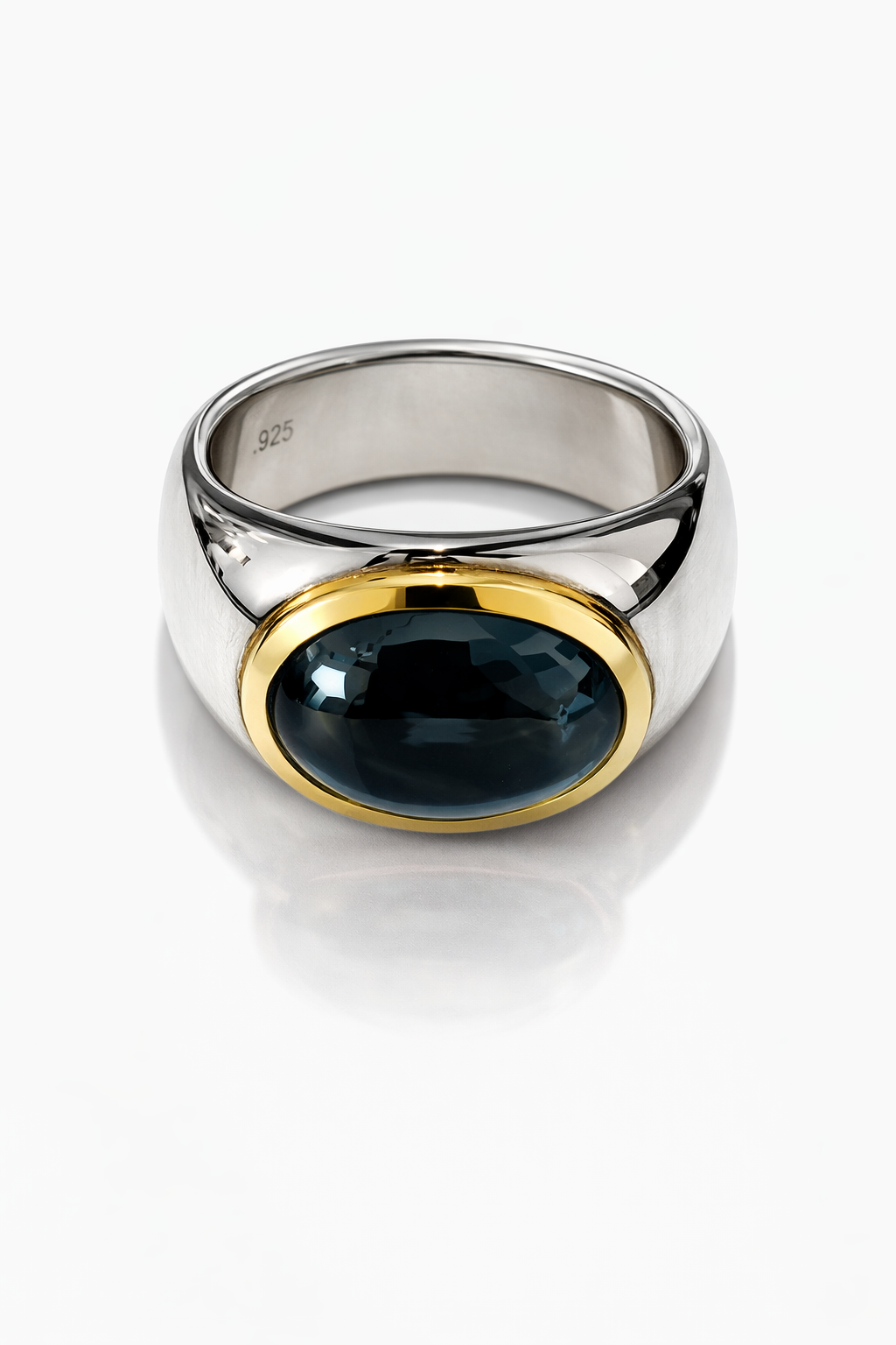 London Blue Topaz ring, 925/- sterling silver + 750/- yellow gold