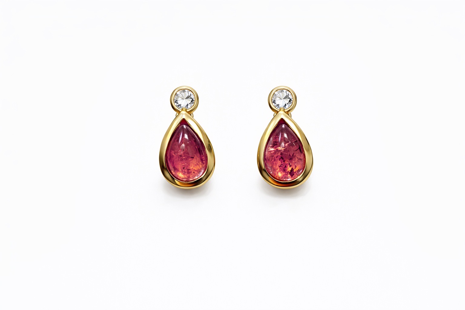 Earstuds, pink tourmaline drops with diamond, 750/- yellow gold