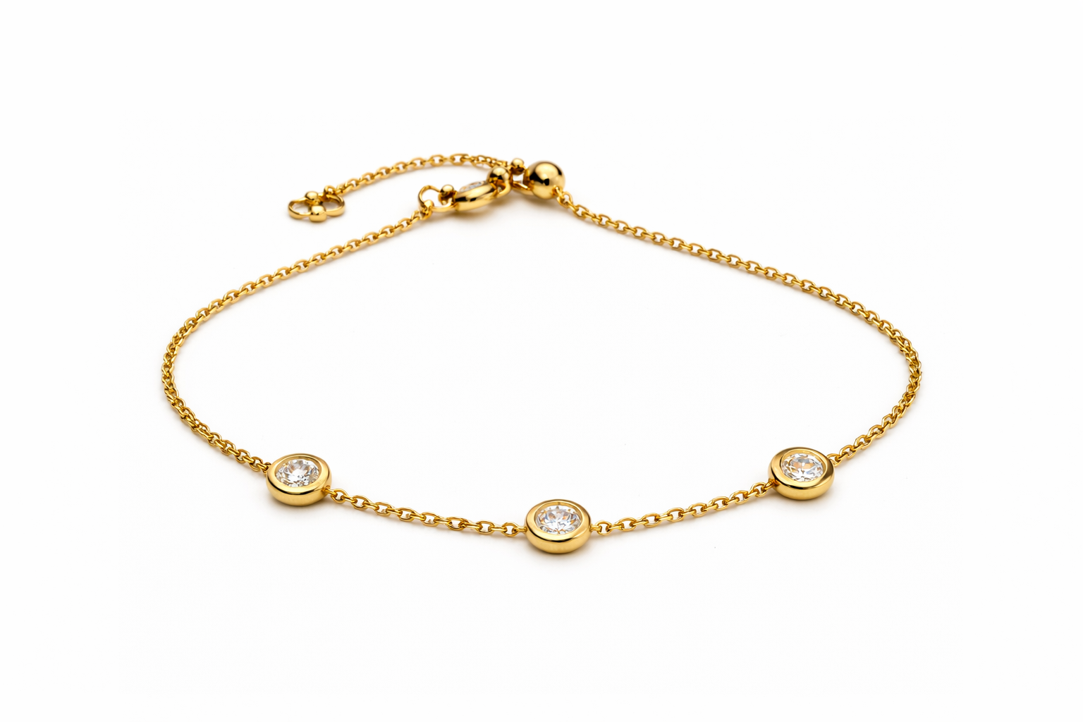 Solitaire bracelet, three diamonds, 0.30 ct., 1.0 mm, 750/- yellow gold