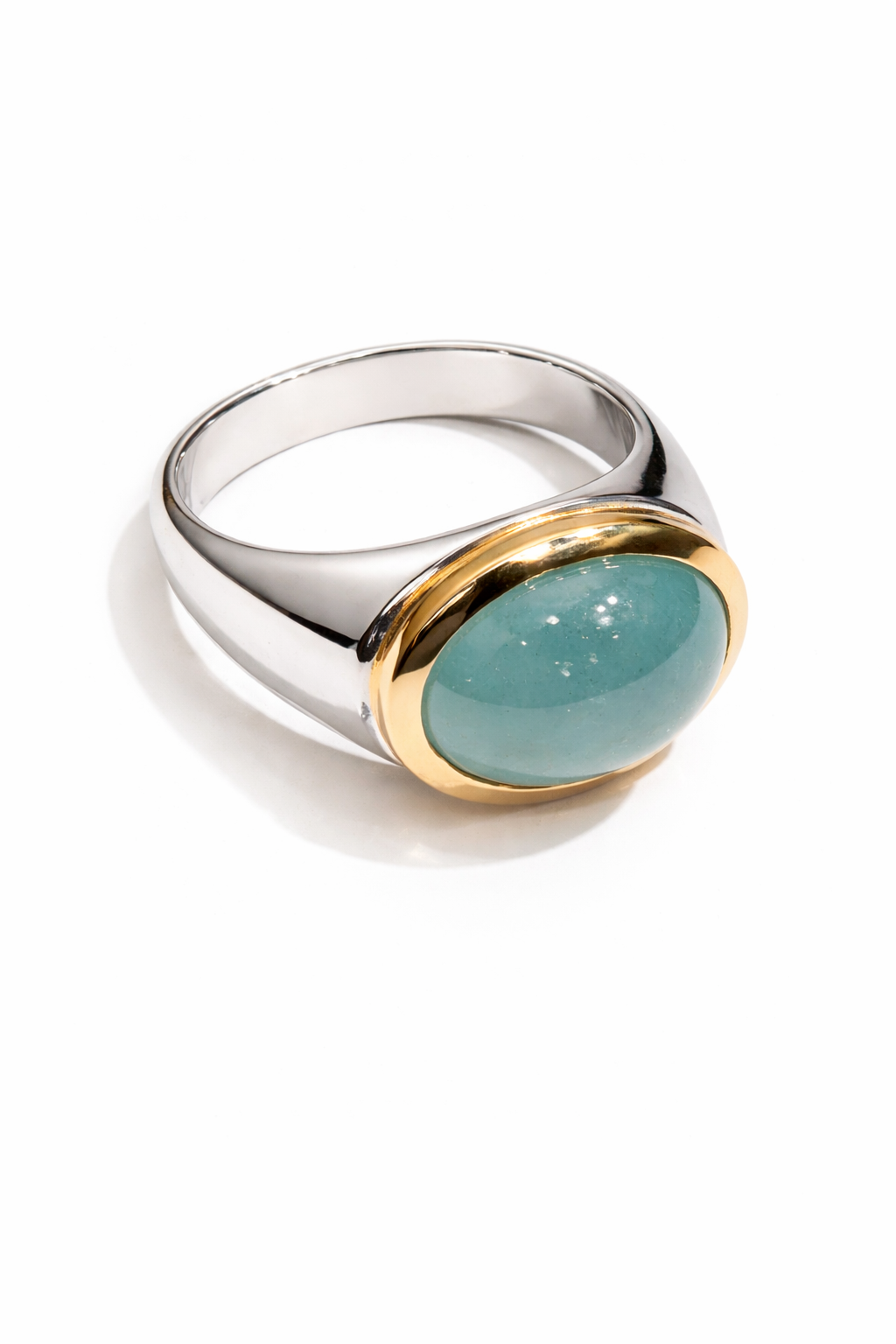 Aquamarine ring, 750/- yellow gold + 925/- sterling silver