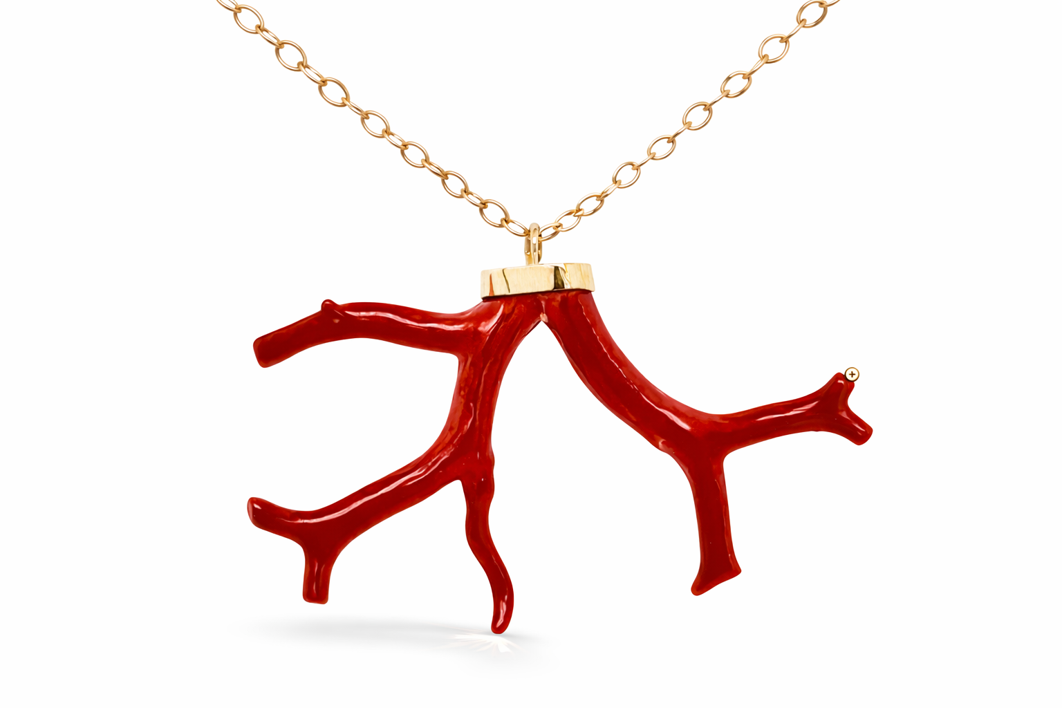 Dieser Korallen-Anhänger in 750/- Gelbgold lässt uns an die im Meer versinkende Sonne –  bei einem Sundowner auf der Piazza – auf der Mittelmeerinsel Capri denken.