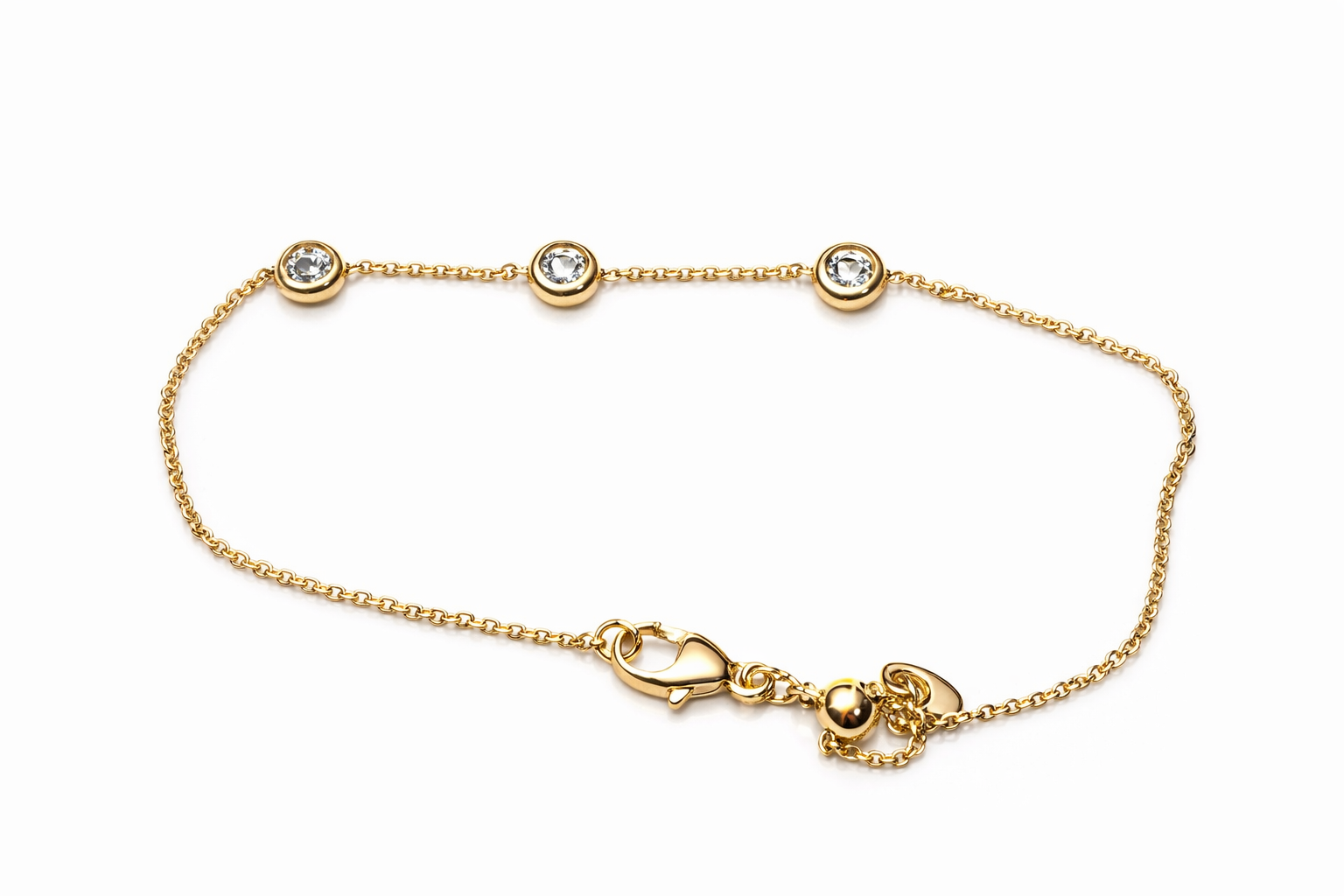 Armband, 3 Diamanten zartgrün 0,23 ct., 1.0mm, 750/- Gelbgold