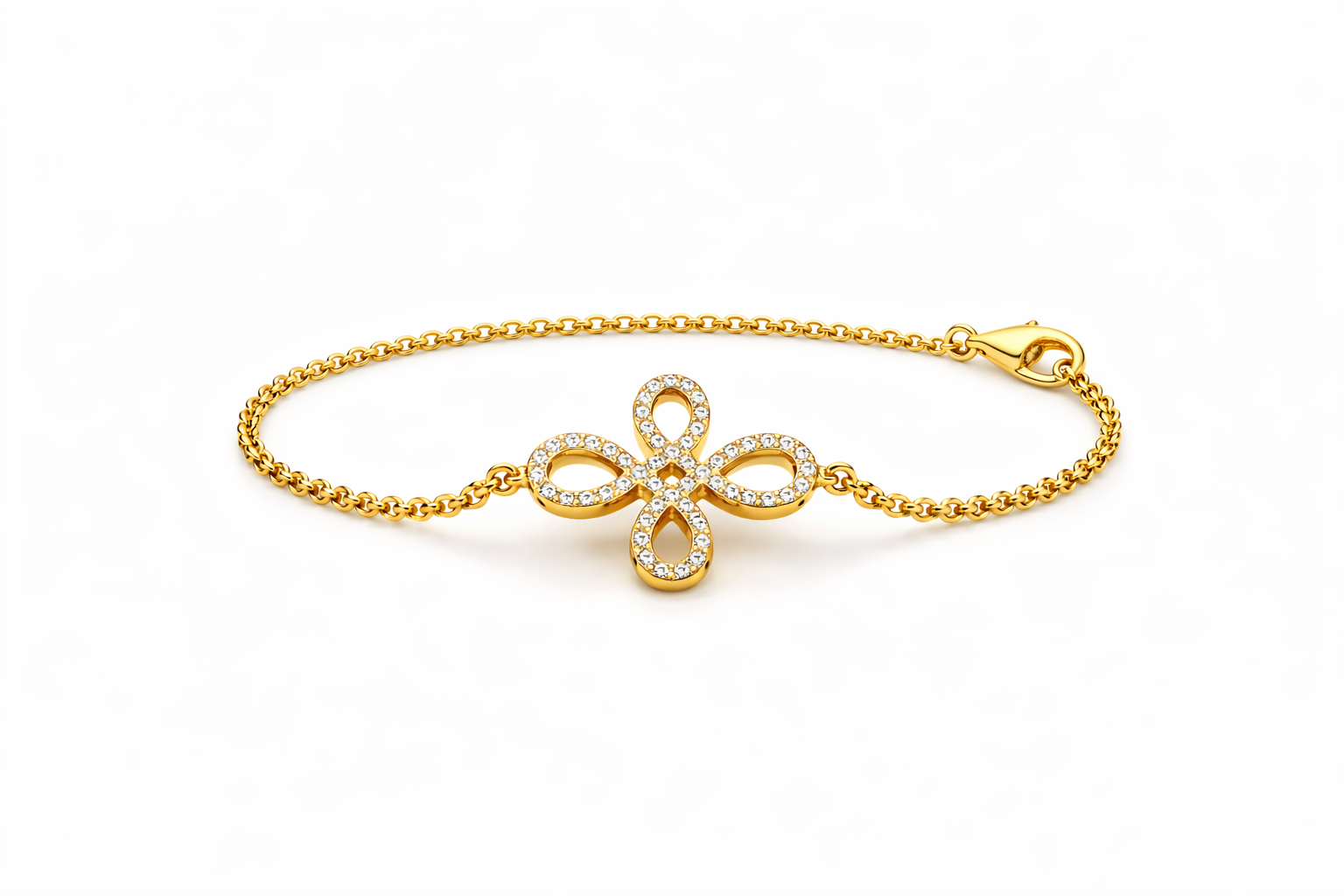 Armband Solitär, Blume mit Diamanten besetzt, 750/- Gelbgold