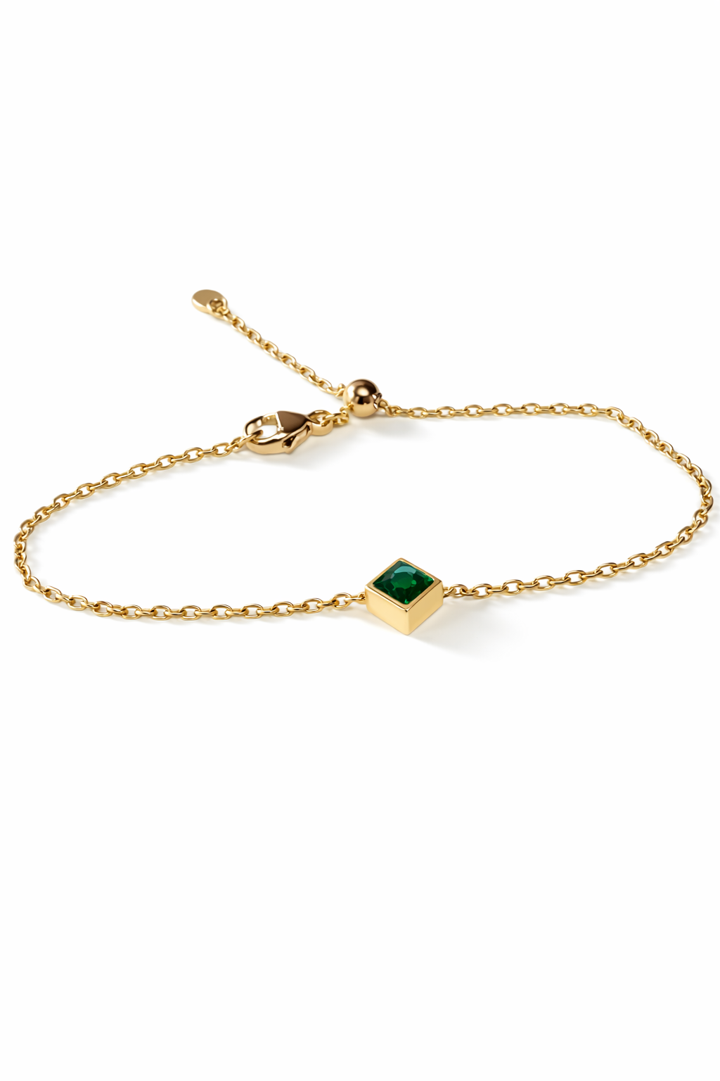 Armband, Tsavorit, 750/- Gelbgold, Karabinerverschluss mit Silikonkugel verstellbar
