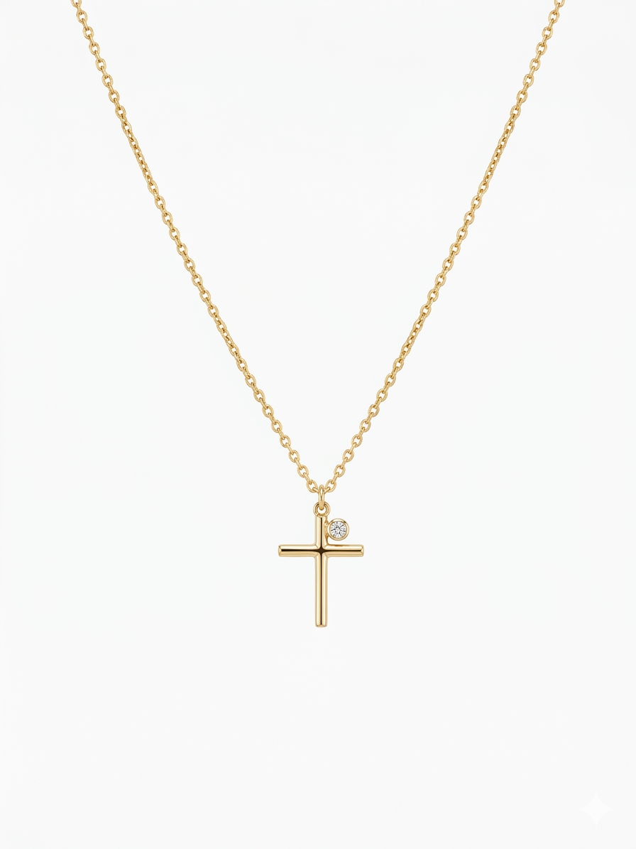 Collier, Kreuz, Diamant, 18 Karat Gelbgold