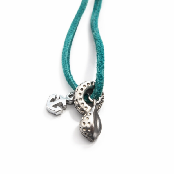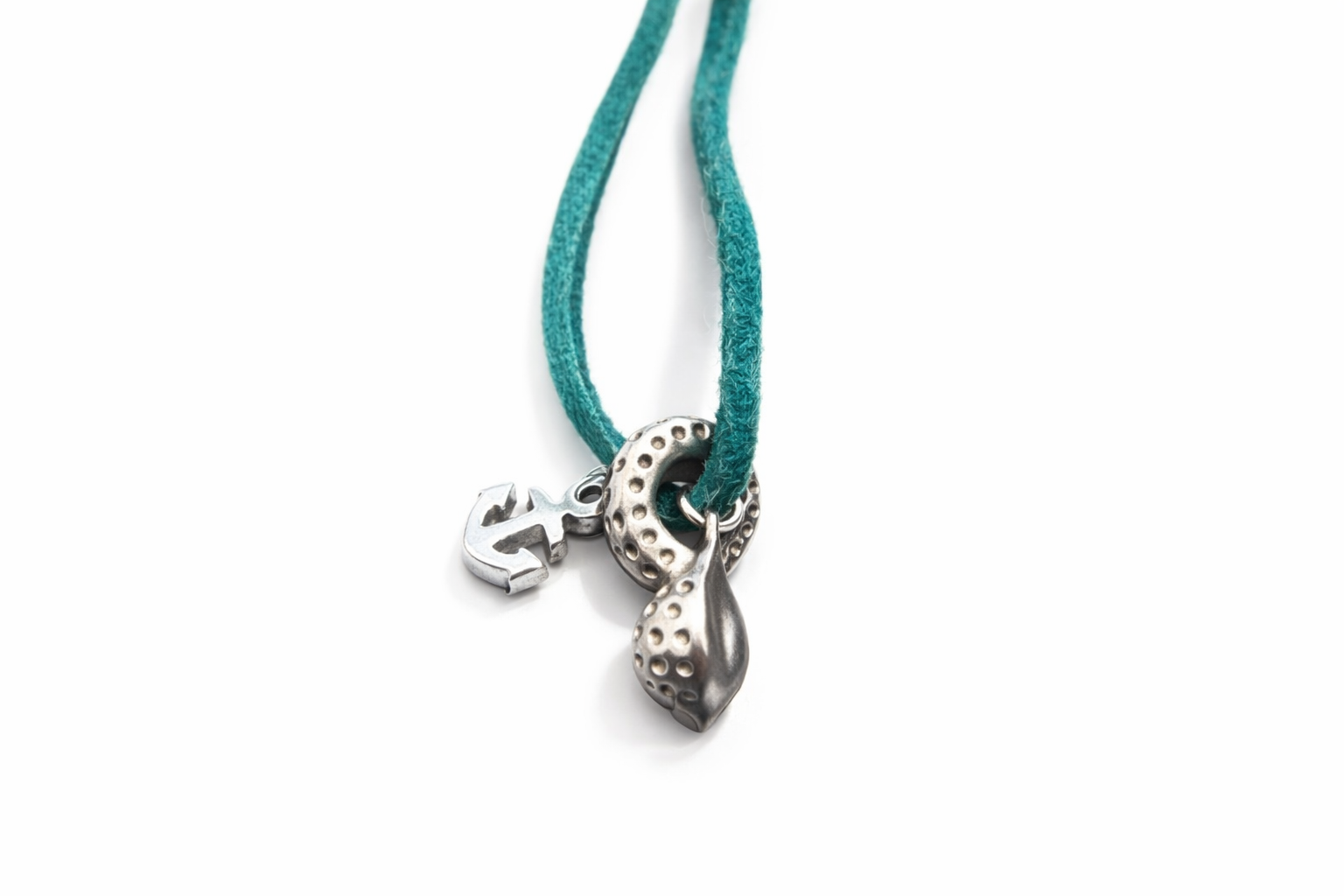 Collier Leder, Seeigel, Muschel, Anker, 925/- Sterlingsilber