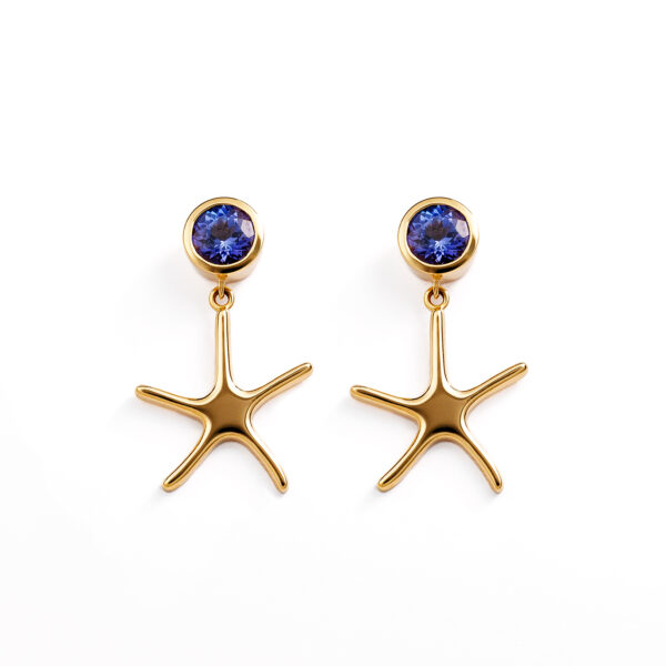 Creolen mit Fischli, Regenbogen-Mondstein + Diamant, 750/- Gelbgold