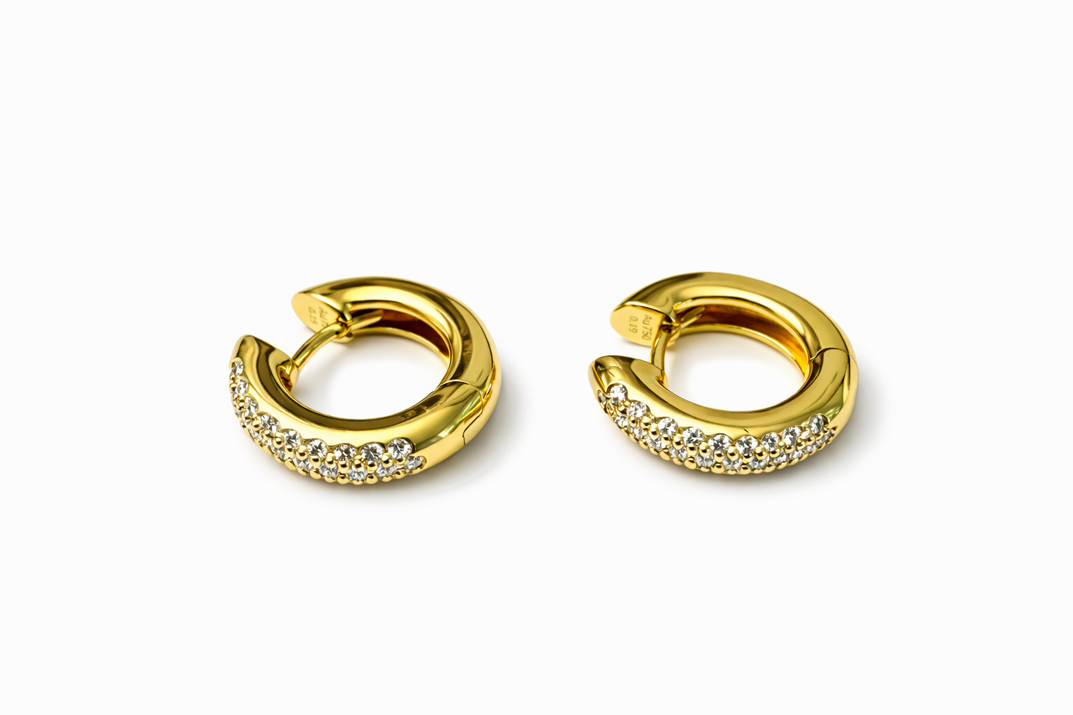 Creolen, 56 Diamanten, zus.: 0,43ct, 15 mm, 750/- Gelbgold