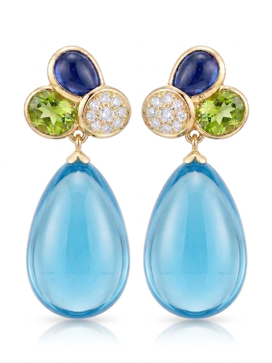 Ohrschmuck Dream, Topas, Peridot, Brillanten, zus. 0,16ct, 750/- Gelbgold