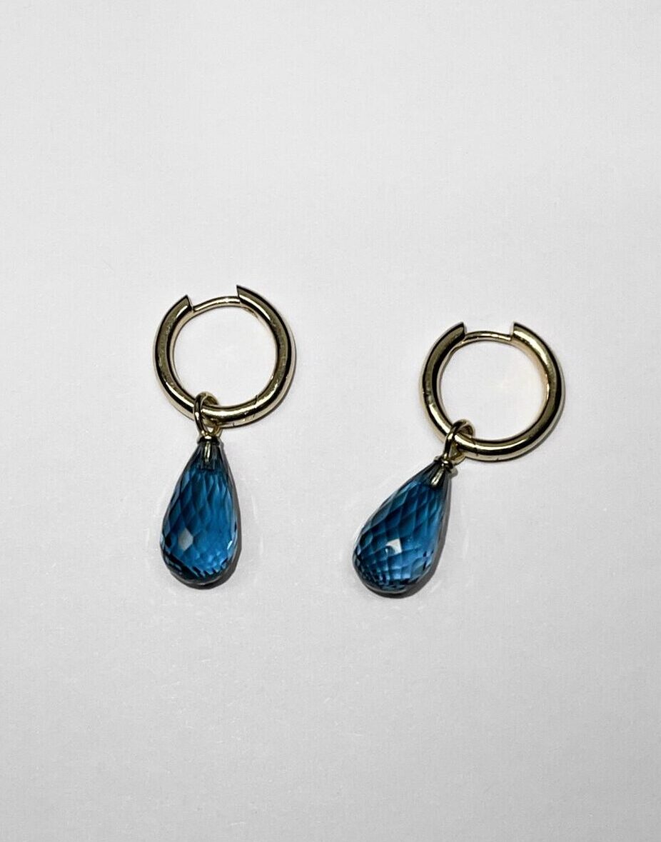 Ohrhänger, London Blue Topas, 750/- Gelbgold, mit Creolen austauschbar