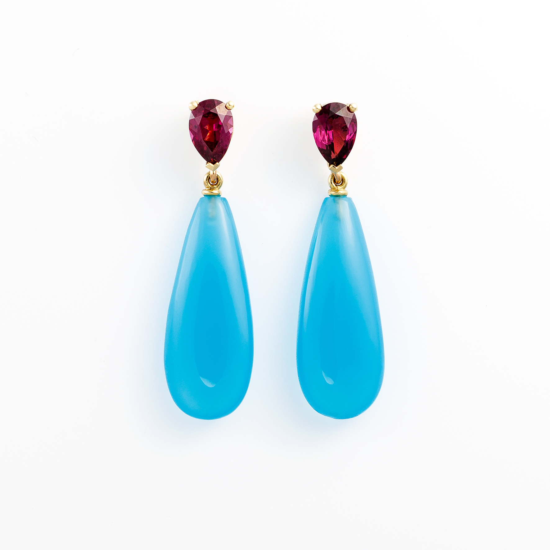 Ohrstecker Fidschi, Rhodolith, Achat, 750/- Gelbgold