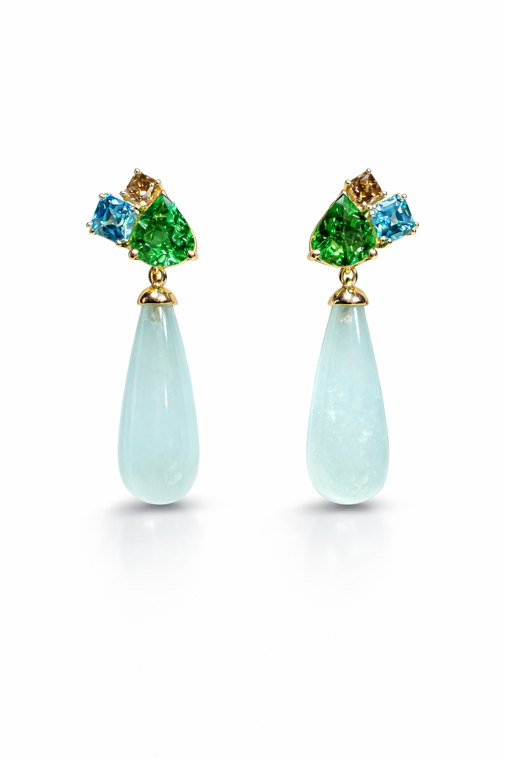 Ohrstecker St. Barth, Apatit, Fancy Diamant, Tsavorit, Aquamarin, 750/- Gelbgold